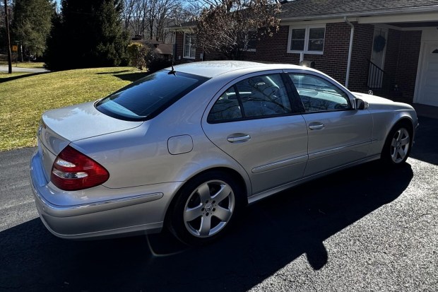 This 2006 Mercedes-Benz E500 sedan was initially delivered to Tysinger Motor Co., Inc., of Hampton, Virginia, and it was acquired by the seller in 2022. The car has 53k miles and is powered by a 5.0-liter V8 paired with a seven-speed automatic transmission. Finished in Iridium Silver Metallic over Ash leather, the car is equipped with the Premium and Appearance packages as well as xenon headlights, a sunroof, Parktronic parking sensors, 17″ five-spoke alloy wheels, heated and ventilated power-adjustable front seats, navigation, a Harman Kardon sound system, a CD stereo, a power rear sunshade, and four-zone …