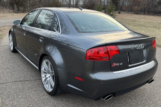 This 2007 Audi RS4 is powered by a 4.2-liter FSI V8 linked with a six-speed manual transaxle and quattro all-wheel drive, and now has 99k miles following the seller’s purchase in 2019. Work since 2024 has involved replacing the fuel injectors and spark plugs, performing a carbon-cleaning service on the intake valves, and removing the intake manifold runner flaps. The car is finished in Daytona Gray Pearl Effect over black Nappa leather and was ordered with the Premium Package, which included a Bose premium sound system with AudioPilot, Audi Navigation Plus, heated rear seats, a light and rai …