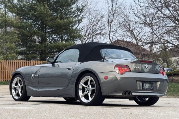 This 2007 BMW Z4 3.0si roadster has 29k miles, and it was optioned with the Sport and Premium packages, which together added a power-operated black convertible soft top, a sport suspension, 18″ Style 108 multi-piece alloy wheels, Dynamic Driving Control, and power-adjustable seats. The car is finished in Stratus Gray Metallic over Beige High Performance leather and is powered by a 3.0-liter inline-six paired with a six-speed Steptronic automatic transmission. Additional features include dual roll hoops, bi-xenon headlights, fog lights, ventilated disc brakes, a BMW Business CD stereo, cruise control, and automatic climate control. This E85 ro …