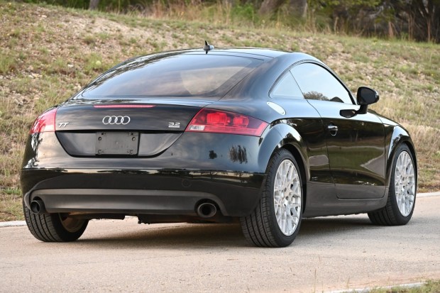 This 2008 Audi TT coupe was specified in Brilliant Black over black and Crimson Red Nappa leather, and it has been registered in Hawaii and Oregon from new. Power is from a 3.2-liter VR6 that drives all four wheels through a six-speed manual transaxle and a Quattro all-wheel-drive system. Features include fog lights, a speed-activated rear spoiler, 18″ TSW multi-spoke wheels, heated power-adjustable seats, an Audi Concert sound system, a CD stereo, cruise control, and automatic climate control. Purchased by its current owner earlier this year, this 8J TT coupe has 73k miles and is now offered …
