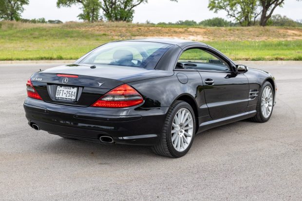 This 2008 Mercedes-Benz SL600 has been registered in Texas from new, and 20k of the 59k miles have been added since the seller purchased the car in January 2019. It is finished in black over black leather, and it was specified with the Premium 1 and Trim packages. Power is from a twin-turbocharged 5.5-liter V12 linked to a five-speed automatic transmission, and further equipment includes a power-folding hardtop, bi-xenon headlights, 18″ AMG multi-spoke wheels, Keyless Go, heated and ventilated multi-contour seats, a Bose sound system, and COMAND with navigation. This R230 is now offered at no reserve with owner’s manuals and a Texas title in the seller’s name.