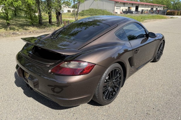 This 2008 Porsche Cayman S was initially delivered to Sonnen Porsche of Mill Valley, California, and was optioned with the Sport Chrono Package Plus, the Makassar Package, and the Preferred Package Plus. The car is finished in Macadamia Metallic over Cocoa leather and now has 44k miles following history in California. Power is provided by a 3.4-liter flat-six paired with a six-speed manual transaxle. Additional equipment includes a deployable rear spoiler, bi-xenon headlights, fog lights, an aftermarket rear wing, lowering springs, 19″ SportDesign wheels, Porsche Active Suspension Management (PASM), a Borla cat-back exhaust …