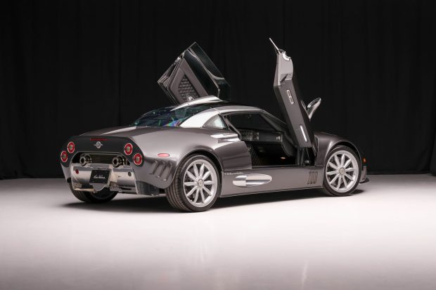 This 2008 Spyker C8 Laviolette is one of 67 produced and was imported new to be offered for sale at Braman Cadillac in Miami, Florida. In 2010, it was exported to Alberta, Canada, before being returned to the US in 2024. Finished in Gunmetal Gray over diamond-stitched black leather, the car is powered by an Audi-sourced 4.2-liter V8 linked to a Getrag six-speed manual transaxle and a Drexler limited-slip differential. Factory equipment included a tinted glass-canopy roof, split metal-framed side windows, magnesium 19″ Aeroblade wheels, …