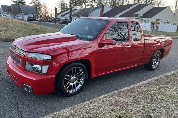 This 2009 Chevrolet Colorado is a rear-wheel-drive, extended-cab pickup that was specified when new with 3LT/Sport equipment, which included the 5.3-liter LH8 V8, ZQ8 Sport suspension, 18″ Midnight Silver alloy wheels, and a color-keyed grille. This example was ordered in Victory Red with Ebony leather upholstery on the heated and power-adjustable bucket seats, along with a locking rear differential and a sunroof. The truck was the subject of a build documented by its previous owner, and it has been modified with an SSBC brake package, QA1 performance suspension components, an SS-style hood and front bumper cover, an SS-style floor shifter conversion, a dual exhaust system, a custom infotainm …