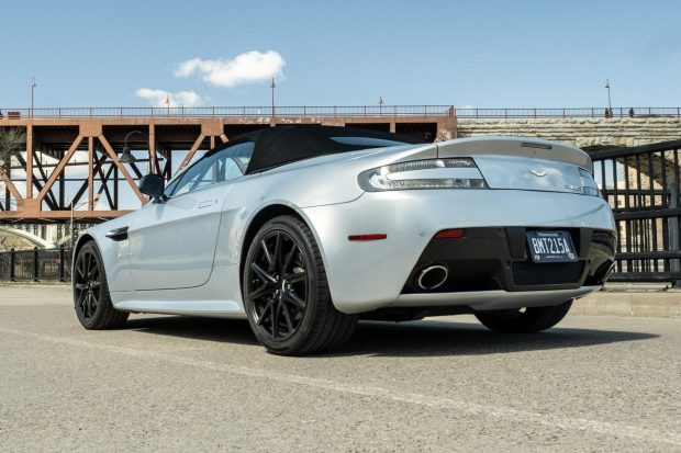 This 2011 Aston Martin V8 Vantage S roadster was registered to two previous owners in California and New York before it was purchased by the seller in 2022 and relocated to Minnesota. Finished in Lightning Silver over Obsidian Black leather upholstery, the car is powered by a 4.7-liter V8 paired with a Sportshift II seven-speed automated transaxle. Equipment includes the Sports Pack, a limited-slip differential, 19″ V-spoke alloy wheels, a black convertible soft top, carbon-fiber exterior trim, xenon headlights, parking sensors, heated power-adjustable seats, navigation, a CD stereo, cruise control, and automatic climate control. Work under …