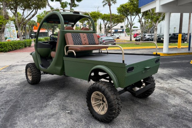 This 2011 GEM eL XD was the subject of an Elevate Designs build that was completed in 2022, with highlights including lifting the suspension, mounting 14″ wheels with 26″ all-terrain tires, refinishing the body in army-green Kevlar coating, retrimming the interior with chocolate brown upholstery, adding a rear-facing seat kit on the truck bed, and installing a Bluetooth Kenwood sound system and LED lighting. The selling dealer purchased the eL in December 2025 and, in February 2026, replaced the Duralast deep-cycle batteries, which are linked to a 72-volt D&D Motor Systems electric motor. This eL XD is now offered at no re …