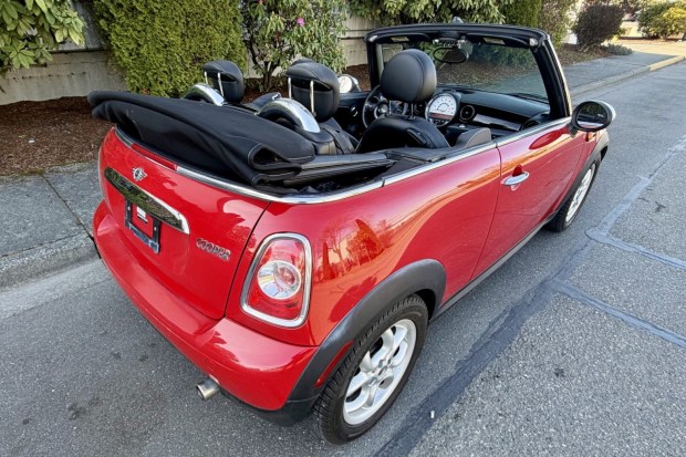 This 2011 Mini Cooper convertible was specified in Chili Red over Carbon Black leatherette, and it was factory optioned with the Cold Weather and Premium packages as well as 16″ four-hole alloy wheels, xenon headlights, Park Distance Control, heated front sport seats, a center armrest, and Piano Black interior trim. The car was first delivered to Mini of Portland in Oregon, and it has spent most of its time registered in the state. Power is from a 1.6-liter inline-four paired with a six-speed manual transaxle, and additional equipment includes a black soft top, fog lights, a Harman Kardon sound …