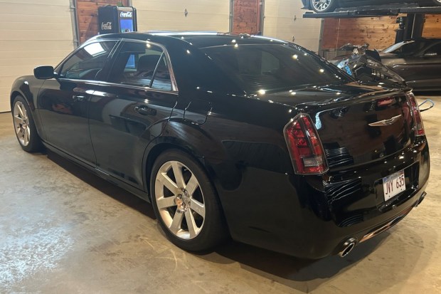 This 2012 Chrysler 300 SRT8 is a Canadian-market example was sold new by the selling dealer in New Brunswick, Canada, and was reacquired by them in 2017. Now with 19k miles, it is powered by a 6.4-liter Hemi V8 paired with a five-speed automatic transmission. Finished in Gloss Black over Radar Red Nappa leather, it is equipped with 20″ wheels, Brembo brakes, a dual-pane panoramic sunroof, adaptive bi-xenon headlights, fog lights, a rear spoiler, parking sensors, Mopar taillights, heated and ventilated power-adjustable front seats, heated rear seats, a Mopar gear shifter, blin …