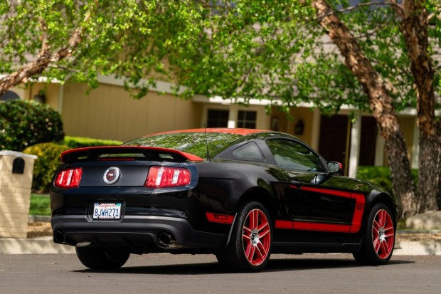 This 2012 Ford Mustang Boss 302 is #25 of 767 Laguna Seca examples produced for the model year and now has 3k miles. Power is provided by a 5.0-liter V8 linked with a six-speed manual transmission and a limited-slip differential, and the car is finished in Black with red body graphics over Charcoal Black cloth and sueded microfiber upholstery. Equipment includes a rear wing, Brembo front brakes, red 19″ 10-spoke alloy wheels, adjustable shocks, Recaro seats, a rear chassis X-brace, and air conditioning. The current owner acquired the car on BaT in July 2019. This Boss 302 is now offered by the seller o …