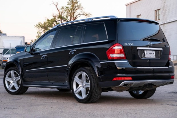 This 2012 Mercedes-Benz GL550 4MATIC was specified in black over Cashmere leather, and it has been registered in California and Texas from new. It is powered by a 5.5-liter V8 linked with a seven-speed automatic transmission and a 4MATIC all-wheel-drive system. Features include 21″ AMG five-spoke alloy wheels, Airmatic air suspension, a sunroof, bi-xenon headlights, running boards, Parktronic parking sensors, heated and ventilated multi-contour front seats, heated second-row seats, a rear-seat entertainment system, a Harman Kardon LOGIC7 sound system, cruise control, tri-zone automatic climate control, Keyle …