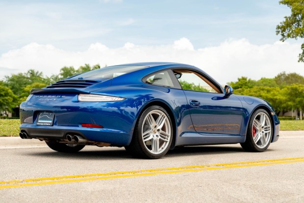 This 2012 Porsche 911 Carrera S coupe was specified in Aqua Blue Metallic over Luxor Beige leather and has 42k miles. It is powered by a 3.8-liter flat-six paired with a seven-speed PDK automatic transaxle and is further equipped with the Sport Chrono Package, a sunroof, 20″ SportDesign alloy wheels, a sport exhaust system, bi-xenon headlights, heated and ventilated power-adjustable front seats, Porsche Communication Management with navigation, a Burmester sound system, and dual-zone automatic climate control. This 991.1 is now offered by the selling dealer with a clean Carfax report and a clean Florida title.