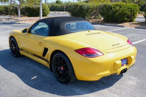 This 2012 Porsche Boxster was specified in Speed Yellow over black leather upholstery, and it was modified following the current owner’s acquisition in 2021 with revised engine management software, black-finished 19″ wheels, red brake calipers, a valved Soul Performance exhaust system, and a short shifter. Powered by a 2.9-liter flat-six linked with a six-speed manual transaxle, the car has a black soft top, a rear spoiler, heated seats, Speed Yellow seatbelts, Porsche Communication Management, a Bose sound system, automatic climate control, cruise control, and Coco-style floor mats. This 987.2 Boxster has 60k miles and is now offered by the se …