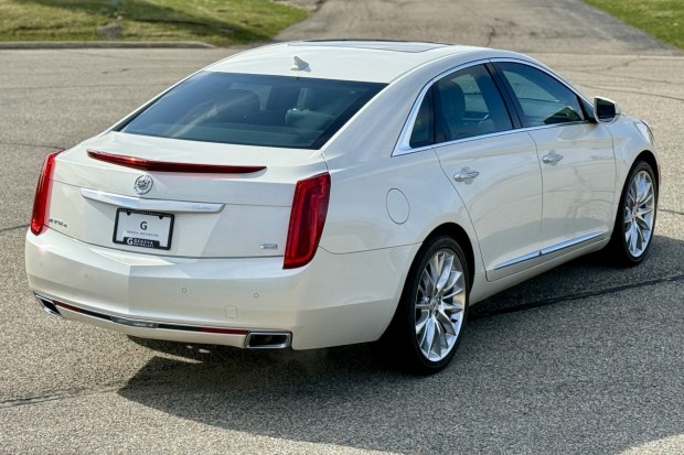 This 2013 Cadillac XTS Platinum Collection was kept by the same owner in Illinois from new before being acquired by the selling dealer in March 2026. Finished in White Diamond Tricoat over Light Platinum leather, the car is powered by a 3.6-liter V6 driving all four wheels through a six-speed automatic transaxle. It features Magnetic Ride Control and 20″ aluminum wheels along with a panoramic sunroof, HID headlights, illuminated door handles, and parking sensors. The cabin is appointed with heated and ventilated front seats, heated rear seats, and a heated steering wheel as well as wood trim, rear …
