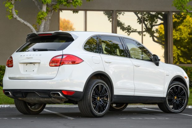 This 2014 Porsche Cayenne Diesel Platinum Edition is finished in White over Luxor Beige leather and is powered by a turbocharged 3.0-liter diesel V6 linked with an eight-speed Tiptronic S automatic transmission and a locking center differential. Equipment includes 21″ alloy wheels, xenon headlights with PDLS, a panoramic sunroof, ParkAssist parking sensors, a rear spoiler, Platinum Silver exterior trim, heated and ventilated power-adjustable front seats, a Bose sound system, a rearview camera, a CD stereo, and Porsche Communication management with navigation. Work in preparation for the sale involved replacing the thermostat, water pump, valve cover …
