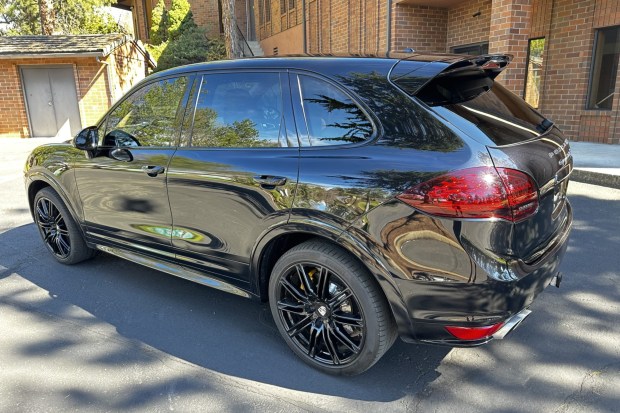 This 2014 Porsche Cayenne Turbo S was specified in Jet Black Metallic over Espresso and Cognac Natural leather, and it was factory optioned with the Premium Package Plus, 21″ Cayenne SportEdition alloy wheels, the Sport Chrono Package, the SportDesign Package, the Yachting Mahogany Interior Package, and a Burmester sound system. Power is from a twin-turbocharged 4.8-liter V8 linked with an eight-speed Tiptronic S automatic transmission and locking center and rear differentials. Additional equipment includes xenon headlights with the Porsche Dynamic Light System (PDLS) as well as ceramic-composite brakes, a sunroof, ParkAssist parking sensors, a back-up …