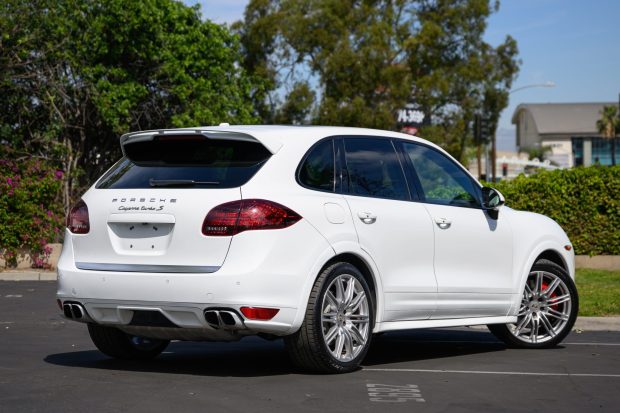 This 2014 Porsche Cayenne Turbo S is finished in White over a Carrera Red and Black leather interior and was optioned with the SportDesign Package as well as 21″ Cayenne SportEdition alloy wheels, a panoramic sunroof, ParkAssist, Lane Change Assist, Porsche Entry & Drive, heated and ventilated power-adjustable front seats, adaptive cruise control, and a Burmester sound system. Further equipment includes xenon headlights with the Porsche Dynamic Light System, Porsche Active Suspension Management, heated rear seats, four-zone automatic climate control, and Porsche Communication Management with navigation. The vehicle is powered by a …