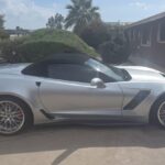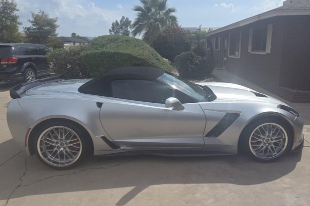 This 2015 Chevrolet Corvette Z06 is a silver-over-red convertible that was optioned with the 3LZ Preferred Equipment Group, which added a performance data recorder, a 10-speaker Bose sound system, heated and ventilated power-adjustable front seats with position memory, and MyLink infotainment with navigation. The car was ordered through Chevrolet of Watsonville in California and was initially delivered at the National Corvette Museum in Bowling Green, Kentucky. Since that time, it has been outfitted with vertically opening scissor-style doors as well as 19″ Y-spoke alloy wheels. The car has 15k miles, and it has been registered in California and Arizona from new. P …