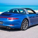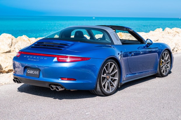 This 2015 Porsche 911 Targa 4 was initially delivered to The Collection of Coral Gables, Florida, and it has 29k miles through registration history in that state since new. The car was specified in Sapphire Blue Metallic over a Black standard leather interior, and additional optional equipment includes a seven-speed PDK dual-clutch transaxle, a sport exhaust system, ParkAssist parking sensors, power-folding side mirrors, and heated and ventilated front seats. Further appointments include a 3.4-liter flat-six, all-wheel drive, a black targa top, GT3-sourced headlights, H&R lowering springs, 20″ Carrera Classic alloy wheels, and yellow …
