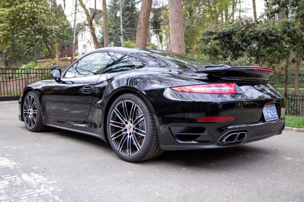 This 2015 Porsche 911 Turbo is a black-over-black coupe that has 19k miles and has been registered in Georgia, Texas, and North Carolina from new. It is powered by a twin-turbocharged 3.8L flat-six that drives all four wheels through a seven-speed PDK dual-clutch transaxle. Equipment includes the Sport Chrono Package, 20″ Turbo alloy wheels, an electronic limited-slip rear differential, a glass sunroof, xenon headlights, heated and ventilated power-adjustable front seats, a Bose sound system, automatic climate control, and Porsche Communication Management with navigation. Purchased by the seller in September 2025, this 991.1 is now offered with a reproduction window sticker, the owner’s manual, service records, a …