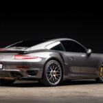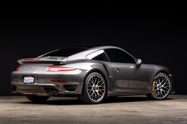 This 2015 Porsche 911 Turbo S coupe was initially delivered to Porsche of Princeton in New Jersey and was specified in Agate Gray Metallic over Carrera Red leather upholstery. The car is powered by a twin-turbocharged 3.8L flat-six that drives all four wheels through a seven-speed PDK dual-clutch transaxle. Optioned with the Sport Chrono and Premium Plus Packages, Power Steering Plus, and a Burmester sound system, it rides on 20″ Turbo S center-lock alloy wheels and is further equipped with Porsche Ceramic Composite Brakes, an electronic limited-slip rear differential, a glass sunroof, LED headlights, he …