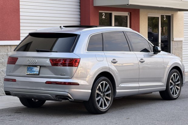 This 2017 Audi Q7 3.0T was initially delivered to Audi Dallas in Texas, and it now has 44k miles. It was optioned with the Prestige, Adaptive Chassis, Driver Assistance, and Cold Weather packages, which combined included 20″ wheels, adaptive air suspension, adaptive cruise control, active lane assist, heated rear seats, a heated steering wheel, a head-up display, a Bose sound system, Audi MMI Navigation Plus infotainment, and ambient lighting. Finished in Florett Silver Metallic over black leather, it is powered by a supercharged 3.0-liter V6 linked with an eight-speed automatic transmission and a Quattro a …