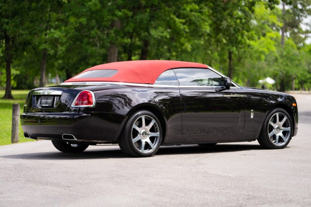 This 2017 Rolls-Royce Dawn was specified with Black Kirsch paintwork that is accented by a red convertible soft top, and its white leather-trimmed interior houses heated and ventilated massaging front seats with Rolls-Royce logos embroidered on the headrests. Power is provided by a twin-turbocharged 6.6-liter V12 paired with an eight-speed automatic transmission, and equipment includes a self-leveling air suspension, 21″ Style 593 alloy wheels with “floating” center caps, a retractable Spirit of Ecstasy ornament, parking sensors, four-zone climate control, navigation, dynamic cruise control, and a premium sound system. Acquired by the selling dealer in 202 …