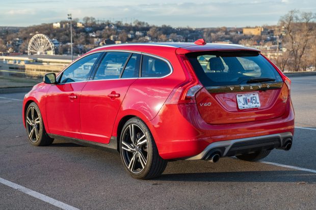 This Passion Red 2017 Volvo V60 is a T6 AWD R-Design that is powered by a twin-charged 2.0L inline-four rated at 302 horsepower. Its specification features standard Platinum trim, and the car was further optioned with the Climate Package, integrated rear booster seats, blind spot monitoring, and Park Assist. Other details include an eight-speed automatic transaxle, 19″ Ixion wheels, adaptive cruise control, a Harman Kardon sound system, a rearview camera, heated front seats, a heated steering wheel, and Offblack R-Design leather. The vehicle was registered with one owner in North Carolina before it was acquired by the seller in January 2023, and it has 62k miles. This V60 i …