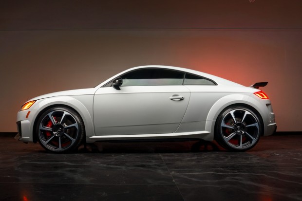 This 2019 Audi TT RS has 20k miles following the seller’s purchase in 2023, and it is said to have been modified under previous ownership with 034Motorsport engine and transmission management software, exhaust components, fuel injectors, engine mounts, anti-sway bars, spherical sway-bar end links, and subframe bolts, as well as a Wagner intercooler, a carbon-fiber engine cover, and an Integrated Engineering carbon-fiber intake and high-flow turbo inlet. Powered by a turbocharged 2.5-liter inline-five that drives all four wheels through a seven-speed dual-clutch automatic transaxle, the car is finished in Glacier White Metallic over black Fine Nappa leathe …