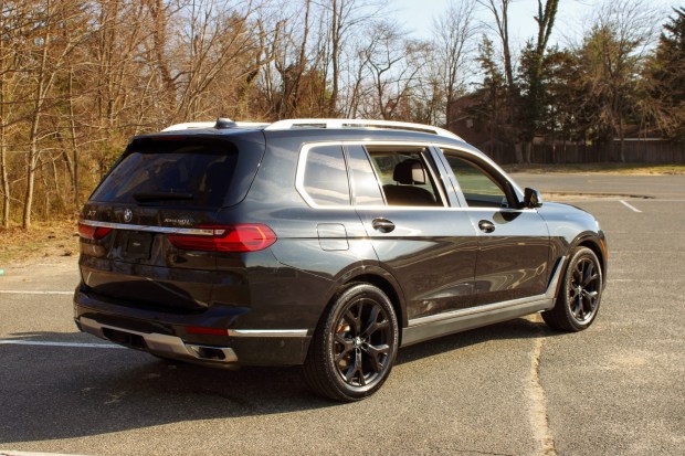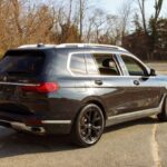 This 2019 BMW X7 xDrive50i is powered by a twin-turbocharged 4.4-liter V8 that drives all four wheels through an eight-speed automatic transmission, and it was optioned with the Cold Weather, Executive, Luxury Seating, and Premium packages. The cabin houses heated, ventilated, and massaging front seats trimmed in black Vernasca leather along with heated second-row captain’s chairs, a head-up display, climate-controlled front cupholders, a Harman Kardon sound system, five-zone automatic climate control, and iDrive infotainment with navigation. The Black Sapphire Metallic vehicle also has LED Laserlight headlights, a Panoramic Sky Lounge LED roof, soft-close do …