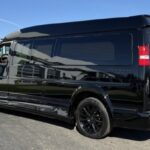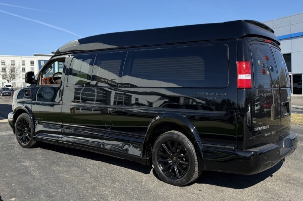 This 2020 GMC Savana is a 2500 Extended that was ordered with a 6.0-liter V8 and a locking differential. It was modified when new with a Limited X-SE conversion package by Explorer Vans of Warsaw, Indiana, which included a nine-passenger Medallion Series interior and a 4×4 drivetrain conversion. It also features an under-vehicle wheelchair lift and additional components installed by MobilityWorks of Londonderry, New Hampshire, and documentation for its build shows total pricing that exceeds $120k. The van is finished in Onyx Black over a gray interior, and it has 20″ wheels, heated and power-adjustable front captain’s …