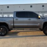 This 2020 GMC Sierra 1500 is a crew-cab pickup that was optioned with the AT4 Premium Package as well as the Technology Package, and it was modified when new by Black Widow Trucks of Trussville, Alabama, with a 6″ suspension lift kit and 22″ wheels. Further details include a sunroof, adaptive LED headlights, a Multipro tailgate, parking sensors, heated and ventilated power-adjustable front seats, heated outboard rear seats, a Bose sound system, adaptive cruise control, a surround-view camera system, and touchscreen infotainment with smartphone integration. The truck is finished in Satin Steel Metall …