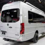 This 2021 Passage 170EXT is a Class B motorhome built by Midwest Automotive Designs of Elkhart, Indiana. Based on a 2020 Mercedes-Benz Sprinter 3500XD 4×4 with a dually rear axle, the van is powered by a 3.0-liter turbodiesel V6 linked to a seven-speed automatic transmission, and it was specified with an Eco Freedom package, which added a 600-Ah lithium battery system and roof-mounted solar panels. Its floor plan features a kitchenette, a wet bath, and a rear lounge/sleeping area. Additional equipment includes a camp-side awning, swiveling front bucket seats, touchscreen controls, two flat-scre …