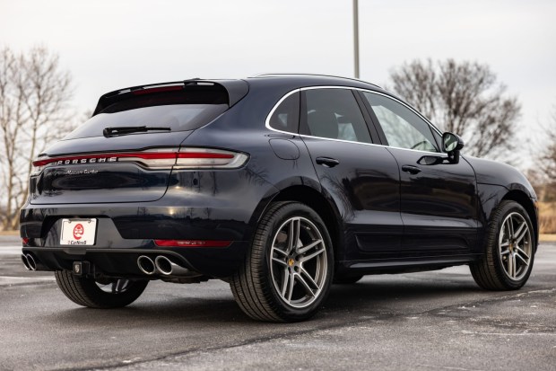 This 2020 Porsche Macan Turbo is finished in Night Blue Metallic over Agate Gray leather and was optioned with the Sport Chrono Package and the Premium Package Plus, which together added launch control functionality, a dash-mounted chronograph, and heated and ventilated front seats. The truck is powered by a twin-turbocharged 2.9-liter V6 linked with a seven-speed PDK dual-clutch transaxle and an all-wheel-drive system. Additional equipment includes LED headlights, a panoramic sunroof, ParkAssist, a sport exhaust system, 20″ Macan Turbo alloy wheels, 18-way power-adjustable front sport seats, a Bose surround sound system, a back-up camera, dual-zone automatic c …
