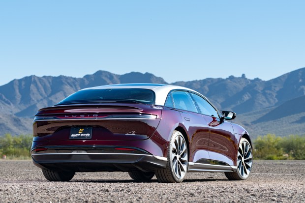 This 2022 Lucid Air Grand Touring is finished in Zenith Red Metallic over a Mojave scheme interior with Lucid Black and Graphite leather. It is powered by dual permanent-magnet electric motors that, combined, produce 800 horsepower. All four wheels are driven via a single-speed transmission. Equipment includes heated, ventilated, and massaging 20-way power-adjustable front seats, a Glass Canopy roof, 21″ Aero Blade wheels, an adaptive suspension, a 34″ Glass Cockpit display, a 21-speaker Surreal Sound audio system, adaptive cruise control, a 112-kWh battery pack, and a 900-volt charging system. The current owner purchased the …