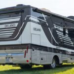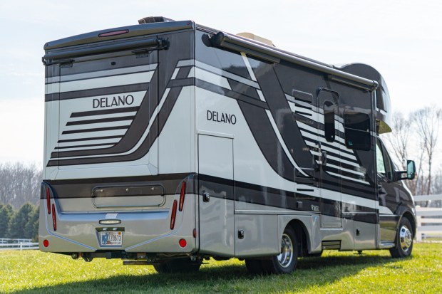 This 2022 Thor Motor Coach Delano 24TT was built on a 2021 Mercedes-Benz Sprinter 3500XD chassis and was purchased new by the seller. Its walk-through floor plan features power slide-out walls, a loft bed, a queen-size bed, a reclining sofa, a table, a toilet, a walk-in shower compartment, Samsung smart televisions, and a kitchenette. Power comes from a 3.0-liter turbodiesel V6 paired with a seven-speed automatic transmission, and the RV rides on 16″ wheels. Additional equipment includes solar panels, an awning, a power generator, a roof-mounted climate control system, shore hookups, a tankless water heater, MBUX infot …