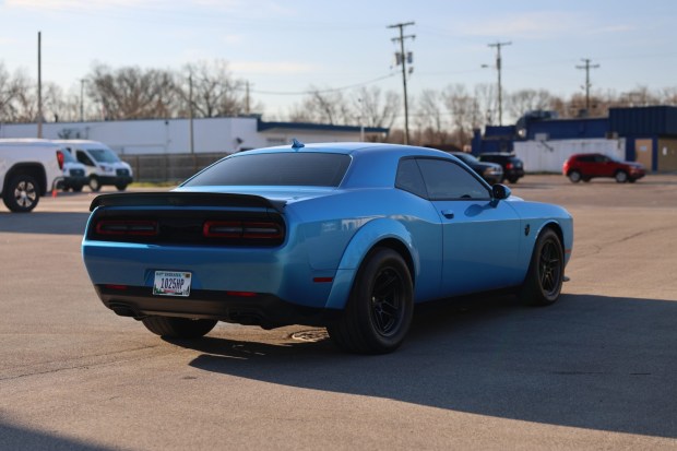 This 2023 Dodge Challenger SRT Demon 170 is #869 of approximately 3,300 examples built for the model year and is powered by a supercharged 6.2-liter Hemi High-Output V8 producing up to 1,025 horsepower and 945 lb-ft of torque, which is sent to the rear wheels via a TorqueFlite eight-speed automatic transmission and a limited-slip differential. Finished in B5 Blue over Demonic Red Laguna leather, the car is equipped with the Premium Group equipment package, Air-Catcher HID headlights, an Air-Grabber hood, a front splitter, an SRT Performance rear spoiler, flared quarter panels, a “Last Call” underhood plaque …