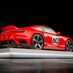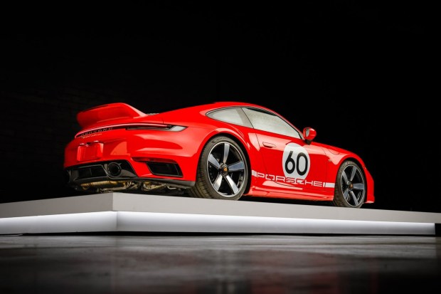 This 2023 Porsche is #224 of 1,250 911 Sport Classic examples produced worldwide, all of which link a Turbo-specification twin-turbocharged 3.7L flat-six with a seven-speed manual transaxle and rear-wheel drive. This example is finished in paint-to-sample Racing Red over black leather and Pepita cloth upholstery, and equipment includes Porsche Ceramic Composite Brakes, 20″ and 21″ Sport Classic wheels, a ducktail rear spoiler, exterior graphics, front and rear parking sensors, LED-Matrix Design headlights with PDLS+, a front-axle lift system, heated power-adjustable front seats, a Bose sound system, and P …