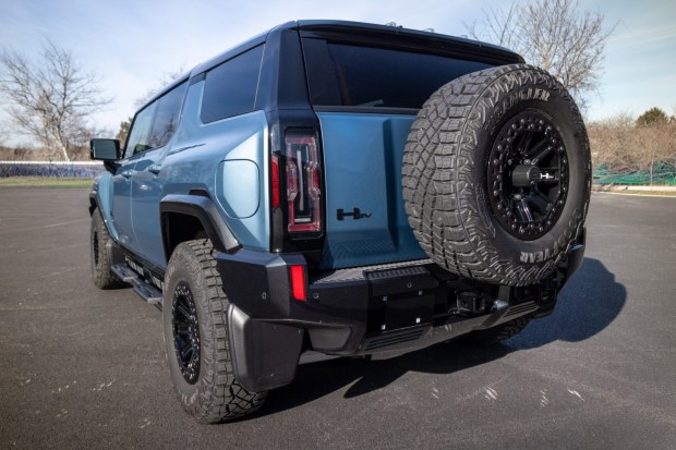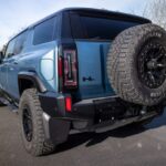This 2024 GMC Hummer EV SUV is a 122-mile 3x Omega Edition example finished in Neptune Blue Matte with gloss paint protection film that was optioned with the Extreme Off-Road and Illumination packages. The Ultium Drive e4WD system is linked to an Ultium 20-module battery pack and sends power to all four wheels via a single-motor front unit with an electronic locking differential as well as a dual-motor rear axle with virtual locking capability. Equipment includes an Infinity Roof with removable Sky Panels in addition to a power-operated tailgate, an adaptive air suspension, CrabW …