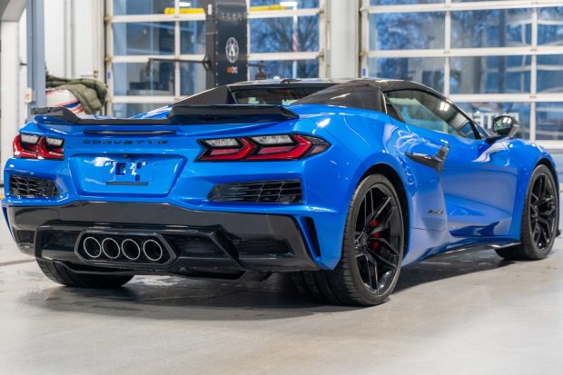 This 2025 Chevrolet Corvette Z06 2LZ convertible has 6k miles and was optioned with Carbon Flash-finished carbon-fiber ground effects, which accent its Riptide Blue Metallic-finished body. Powered by a 5.5-liter LT6 V8 paired with an eight-speed dual-clutch automatic transaxle, the car is further equipped with Jet Black leather upholstery, a power-retractable hardtop, a rear spoiler, 20″ front and 21″ rear forged aluminum wheels, Magnetic Selective Ride Control, Brembo disc brakes, heated and ventilated GT2 bucket seats, a front-axle lift system, a performance data and video recorder, a Bose sound system, and a touchscreen infotainment system. This C8 Z06 was acquired by the selling dealer in 2025 and is now offered with a window sti …