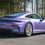 This 2026 Porsche 911 GT3 Touring was optioned with a six-speed manual transaxle as well as a paint-to-sample Viola Purple Metallic exterior finish, and its heated front carbon-fiber bucket seats are trimmed in black upholstery with GT Silver stitching. Stopping power is through Porsche Ceramic Composite Brakes with yellow-finished calipers, and power is provided by a 4.0-liter flat-six. The car has 95 miles and is further equipped with HD-Matrix Design LED headlights, a speed-activated rear spoiler, the Chrono Package, a 22.1-gallon extended range fuel tank, rear-axle steering, a front-axle lift system, 20″ and 21″ GT3 center-lock alloy wheels, rear seats, a Bose sound system, and Porsche Co …