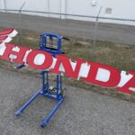 This single-sided Honda sign was acquired by the seller in 2025 and subsequently imported into the US. The sign has internal LED illumination and measures approximately 10 feet wide by 21″ tall. It is constructed of a white-finished metal frame and red plastic translucent faces, and it features 120-volt circuitry, a US-style wall plug, a metal backbone frame, and mounting provisions. This illuminated Honda sign is now offered at no reserve in Niagara Falls, New York.