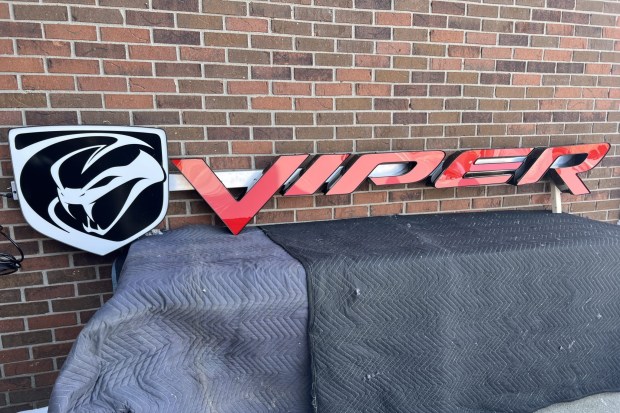 This illuminated Dodge Viper sign features the model’s logotype in red along with a “Stryker” logo rendered in black and white, and is illuminated by internal 120-volt LED fixtures. This illuminated Viper sign was acquired by the seller in 2025 and is now offered at no reserve in New Baltimore, Michigan.