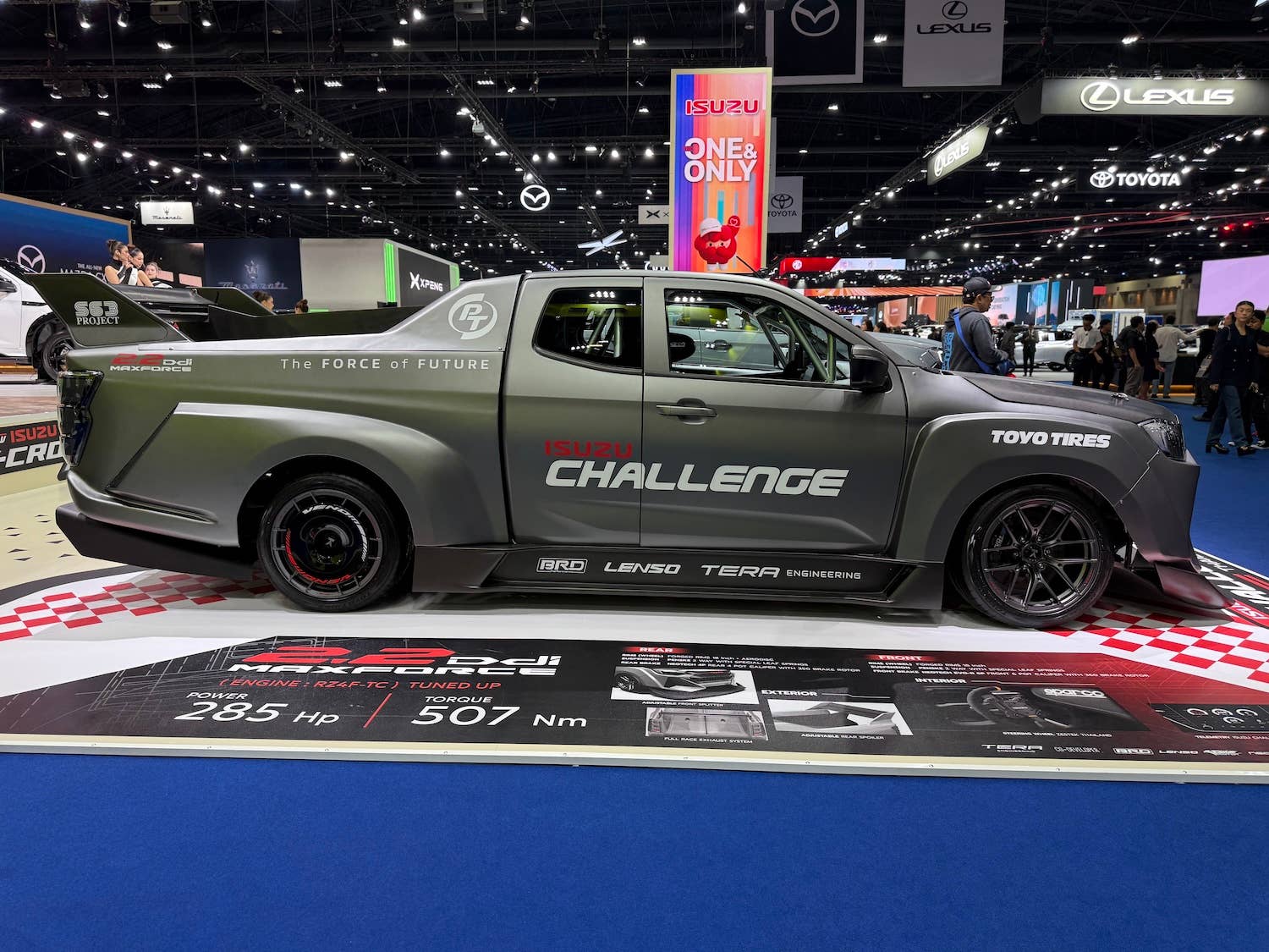 Seeing It in the MetalI remember seeing the Nissan Formula E car and the Leaf Nismo RC up close back in 2023. Both felt completely detached from their road-going counterparts – low, wide, and clearly engineered for nothing but lap times. Carbon fiber everywhere, purpose-built everything.That was exactly the impression I had when I stood in front of the Isuzu Challenge D-Max at the 47th Bangkok International Motor Show. This is Isuzu, a brand most people know for their work trucks, now showing off something that looks like it belongs in a GT paddock.Technically, it’s a race truck. But up close, it feels more like a touring car that just happens to have a bed. The stance is wide, the aero is aggressive, and every detail looks like it serves a purpose. It doesn’t have that concept car vibe – it looks ready to hit the track.