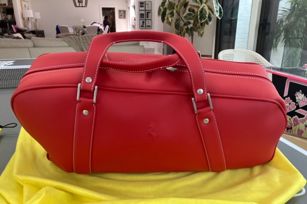 This two-piece luggage set was produced by Schedoni of Modena for use in a Ferrari 458 Spider and comprises two bags, each with red leather exteriors and white stitching. Additional features include silver hardware, embossed prancing-horse logos, and “458 Spider” script as well as zippered interior pockets and Ferrari-branded interior linings. This two-piece 458 Spider luggage set is now offered at no reserve by the seller on behalf of the owner in Houston, Texas.