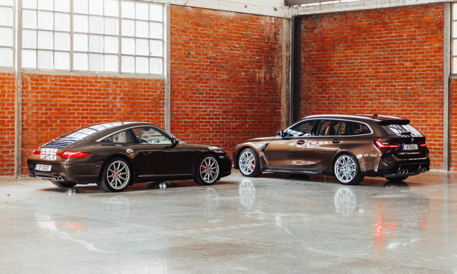 The perfect two-car garage typically combines a versatile daily driver with a more performance-oriented car for weekends. These two cars ordinarily have little in common, as they serve entirely different purposes. However, one enthusiast who owns a BMW M3 Touring and a Porsche 911 (997.2) Targa 4S took things a step further by commissioning his BMW to perfectly match the Porsche’s spec. The result is one of the most spectacular and unexpected two-car pairings we’ve come across.Two Fast Germans in Macadamia Metallic