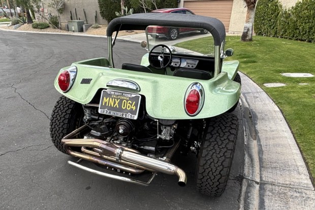 This Meyers Manx Classic Buggy was manufactured and acquired by the seller in 2025, and it is finished in Sea Green with a black bikini top. Power is provided by a 1,914cc flat-four that was built with a 110 camshaft, “big valve” heads, and dual 40HPMX carburetors, and the buggy rides on custom Meyers Manx/King shocks and staggered-diameter painted steel wheels. Further equipment includes a four-speed manual transaxle, an underbody skid plate, a chrome roll bar, and four-wheel disc brakes. Cabin appointments consist of PRP Elite Suspension seats, green and black patterned upholstery, an …