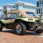 This Meyers Manx was purchased by the seller in 2015, reportedly from its builder and original owner, and since that time work has included the installation of custom PRP heated bucket seats, color-coordinated carpeting, and a Kenwood digital media receiver as well as replacing the coilover shocks, ignition coil, and distributor, and commissioning a custom tan canvas top with matching doors. The car is powered by a single-port 1.6-liter flat-four fitted with dual Weber carburetors and an EMPI exhaust system and is finished in green over tan fabric upholstery. Additional equipment includes Prostar-style 15″ wheels, front disc brakes, adjustable coilovers, chrome bumpers, D …