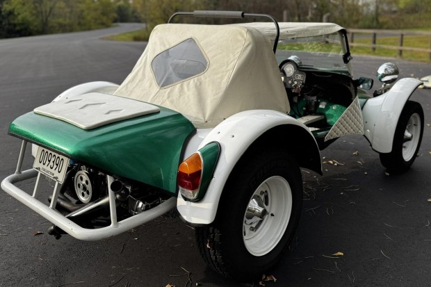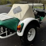 This Meyers Manx Tow’d is a tube-frame buggy that is finished in Emerald Green with white accents and has been fitted with Tow’dster-style bodywork. A Meyers Manx surfboard will accompany the vehicle and is finished to match the bodywork. Acquired by the seller in 2024, the vehicle is powered by a dual-port 1.5-liter flat-four paired with a four-speed manual transaxle. The buggy rides on 15″ white-finished wheels and has four-wheel drum brakes with a road/sand front brake control. Other details include a white soft top with a plastic rear window in addition to fib …