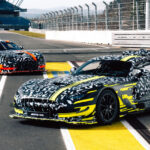 The yellow-accented car seen here is the production Black Series, and it has a wilder aero package than the racer does.