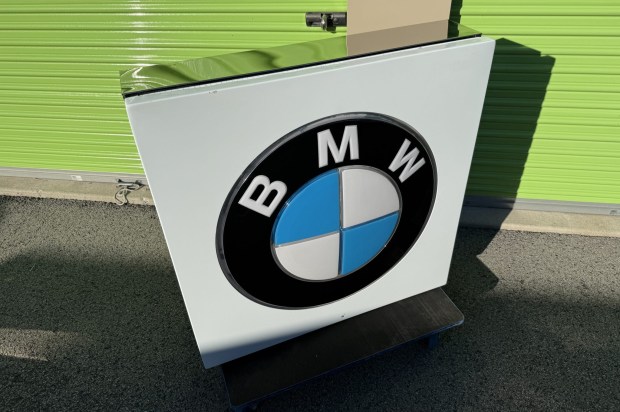 This BMW sign was reportedly stored in a shipping crate in an Arkansas barn for 30 years, and it was purchased by the seller in January 2026. The sign has a metal frame and a translucent sign panel illuminated by fluorescent tubes. This illuminated BMW sign is now offered at no reserve in Niagara Falls, New York.